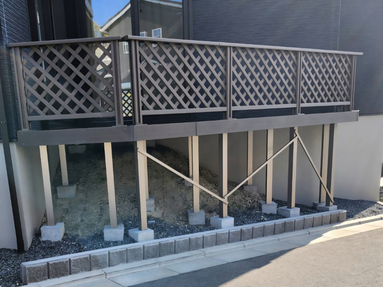 南大阪お客様から デッキフェンスと5種類の芝桜植栽依頼 (アメーシングクレース、オーキントンブールーアイ、キャンディーストライプ、ダニエルクッション、スカーレットフレーム) 春には4、5月頃には デッキカフェと花のじゅうたん 「Good times」 ありがとうございました。
